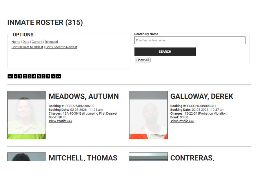 A person can be located by using the inmate search tool provided with the Escambia County Jail Roster. By entering a first or last name, users can view the custody list that shows individuals currently held in the facility, along with basic identifying details. The roster reflects active jail records and helps families, legal contacts, and researchers confirm whether someone is in custody at the time of the search.