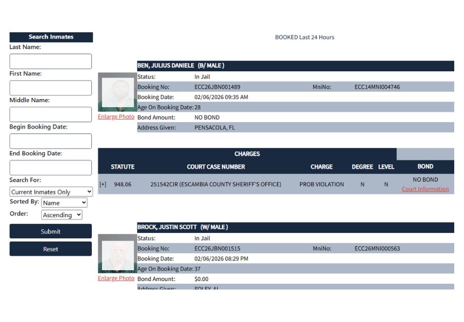 Searching for Escambia mugshots can be done through the official jail roster or online inmate lookup tools provided by the Escambia County Sheriff’s Office. Users typically need basic information such as the individual’s full name, booking date, or booking number to locate a specific mugshot. While some third-party websites also display booking photos, the official jail system provides the most accurate and up-to-date information. It is important to note that not every arrest may immediately appear, and delays can occur depending on processing times or administrative updates. Consistently checking the official system ensures the most reliable access to booking photos and arrest information.